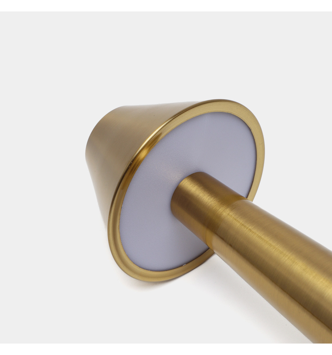 A luminária cone é produzida com material metálico de alta resistência e acabamento dourado escovado, que garante durabilidade e um visual sofisticado para qualquer ambiente.